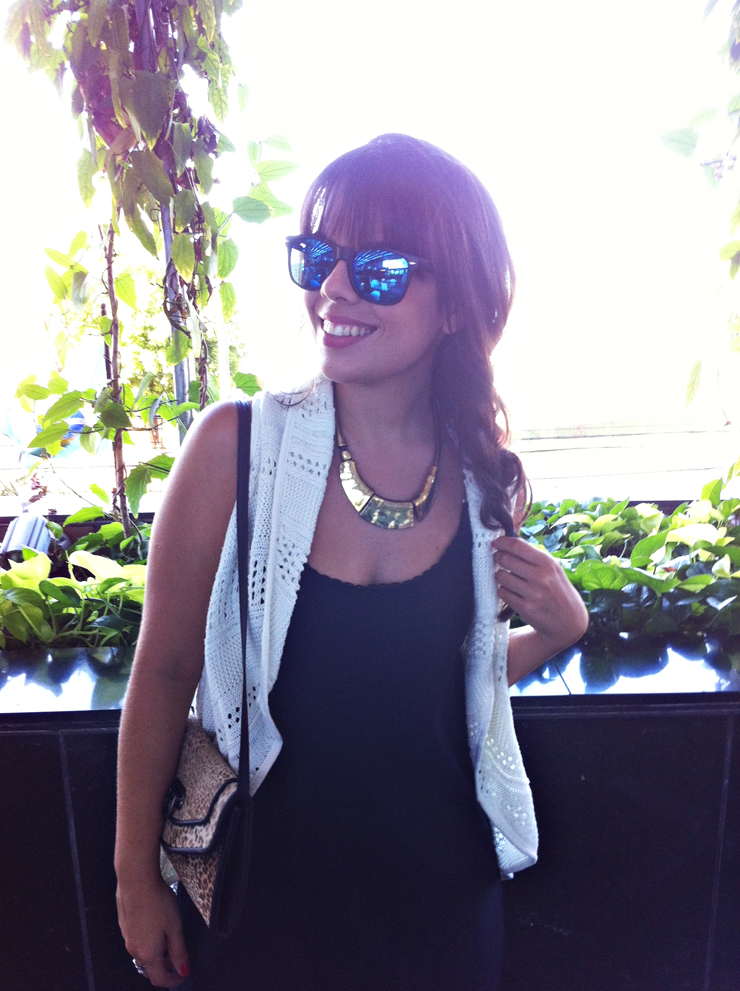 Peguei o meu 'vestido' preto, que na verdade é o forro de um vestido de renda, viva esses forros separados e bem feitos, sempre ajudam nas horas de 'não tenho o que vestir'. Combinei o vestido com o maxi colete de crochê e minha amada bolsa de oncinha!