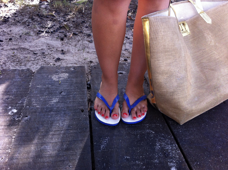 Nos pés nada melhor e mais apropriado do que havaianas, e eu gosto é da tradicional mesmo, aquela famosa de 'peão'. hahaha